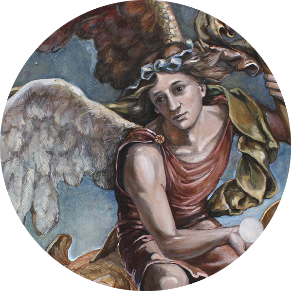La fresque est constituée de 30 tableaux qui forment une cohérence thématique. Ce programme iconographique raconte une histoire immersive dans laquelle le visiteur peut voyager librement dans un espace d’exposition unique.